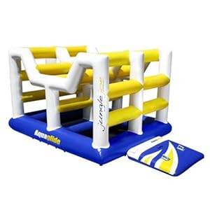 A jungle gym that sits atop the water, the Aquaglide Jungle Joe is a multi-tiered climbing structure with an interior splash zone. It's the fun of a playground that you can enjoy on a lake! Kids can hang out like they would on monkey bars and adults can relax in the splash zone. Through the Interloc System you can connect other Aquaglide items like slides and blast bags for even more fun. The Jungle Joe is designed with DuraTex, a commercial grade fabric reinforced PVC, which is Hot Air Welded for maximum strength and durability. There is also a UV Block which is makes the Jungle Joe high resistant to the sun's dangerous rays for years. It's excitement and fun day after day, summer after summer! Features: 3 Year Limited Warranty (1 Year Commercial Use). Built in Cooler?: No, Model Year: 2011, Product ID: 220826, Shipping Exclusion: This item is only available for shipment by UPS to the lower 48 United States. APO, FPO, PO BOX, Hawaii, and Alaska shipments may not be possible for this item. (Please call prior to purchase.), Special Order: This is a Special Order item, will be shipped from the manufacturer, and is not stocked in our warehouse. All Returns/Exchanges are subject to a 20% restocking fee. This item does not qualify for our Price Matching Policy. Order processing time may vary.